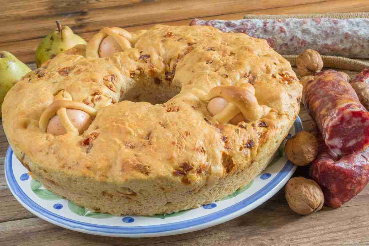 Un impasto di pane arricchito con sugna, salumi, formaggi e uova sode, che esplode di bontà e profumi. Come vuole la tradizione, si usa prepararlo e consumarlo il Sabato Santo oppure lo si porta fuori come tipico ‘pranzo a sacco’ a Pasquetta.